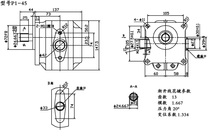 P1-45變速齒輪油泵是一種低壓泵,具有體積小,重量輕,噪音低,結(jié)構(gòu)簡單,工作可靠等特點,主要應(yīng)用于上海彭浦推土機(jī)變速系統(tǒng)。