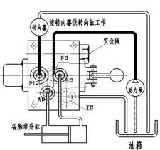 3.換向閥在中位時(shí)P口到P1口,此時(shí)P1口接轉(zhuǎn)向器