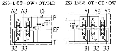 ZS3 型鉆機操縱閥定位方式有鋼球定位與彈簧復(fù)位兩種,滑閥中位機能有 O Y A 三種,該閥有帶分流和不帶分流閥兩種,帶分流閥可提供穩(wěn)定流量,以滿足鉆機的性能要求。