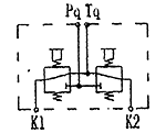 4(2)KQF型操縱氣閥的原始位置Pq口與T口是封閉的,各控制口K與TQ口相通。搬動(dòng)手柄可在四個(gè)或二個(gè)不同角度。該閥的工作原理示意圖如下