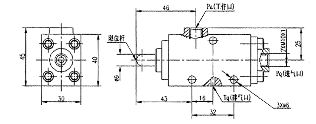 QXF6型氣控限位閥的外型及安裝圖: